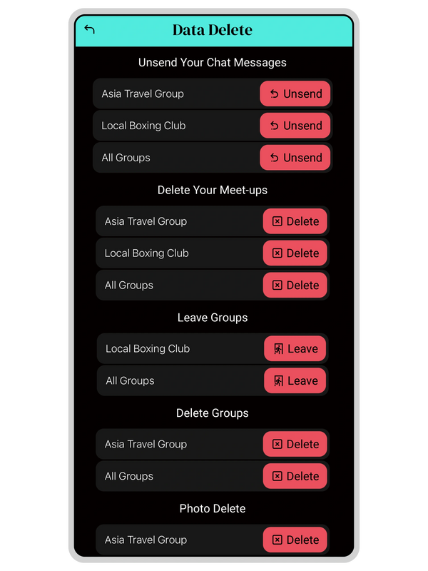 You can also use "everything not including" followed by one or more of the list above e.g. "delete everything not including my messages & my meet-ups".