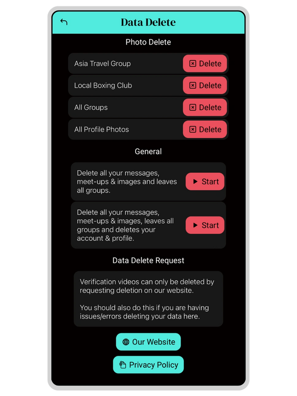 Common reasons - error with in-app data deletion tool, requesting to delete verification video, no longer able to access Síolta app.